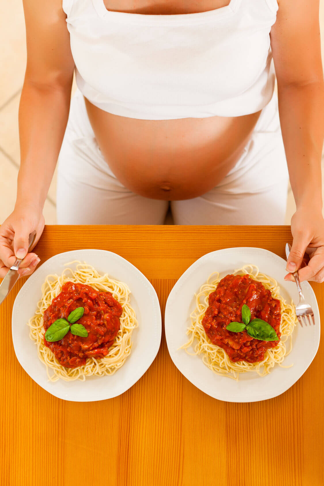 A mulher grávida não precisa realmente comer por dois, salvo em casos em que há ordens médicas específicas. Durante a gravidez, o corpo torna-se mais eficiente na absorção de nutrientes, por isso ao dobrar a quantidade de comida, a mulher não estará a aumentar as chances de ter um bebé saudável, mas sim em ganhar peso excessivo. Lembre-se que as necessidades calóricas da mulher grávida aumentam apenas cerca de 300 kcal por dia, mais precisamente, 100 kcal no primeiro trimestre e 300 kcal no segundo e terceiro trimestres.