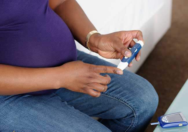 Diabete gestacional ocorre quando a mulher não é diabética, mas é diagnosticada com essa condição na gravidez. Isso ocorre porque na gestação há uma alta produção de vários hormónios e muitos deles prejudicam a acção da insulina nas células. O aumento da glicemia materna se caracteriza principalmente por uma resposta tardia da elevação da insulina, gerando uma hiperglicemia.