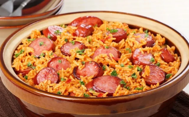 O arroz de linguiça e pimentões é uma refeição prática e cheia de sabor que combina a robustez da linguiça com a frescura dos pimentões, criando um prato equilibrado e apetitoso. Ideal para aqueles dias em que se deseja uma refeição simples, mas nutritiva e cheia de sabor. Bom apetite!