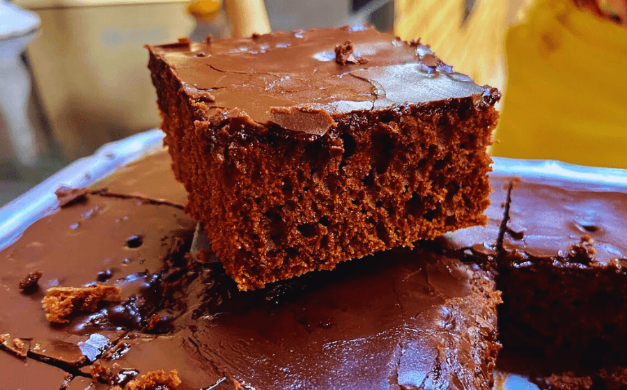 - Sirva fatias deste delicioso bolo de chocolate com casquinha e delicie-se com a combinação de texturas e sabores. Bom apetite!
