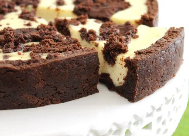 Instruções da receita: Esmague o brownie ou bolo, acrescente a manteiga e pressione a massa no fundo e laterais de uma forma removível. Reserve. Aqueça o cream cheese no micro-ondas por 20 segundos. Bata os ovos, o açúcar, o cream cheese, o iogurte e a baunilha à mão e coloque e cubra a forma. Salpique o brownie ou o bolo restantes sobre o recheio asse em forno médio por cerca de 25 minutos ou até o recheio levemente mole. Deixe esfriar por aproximadamente 2 horas na geladeira. Sirva de seguida. Saboreie esta doce sobremesa.