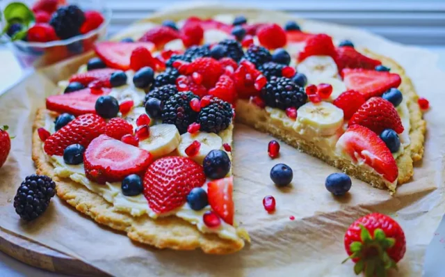A pizza de creme de avelã com frutas é uma sobremesa inovadora e deliciosa que combina a suavidade e o sabor do creme de avelã com a frescura das frutas. Esta receita é ideal para surpreender os seus convidados ou para se deliciar em uma ocasião especial. Bom apetite!