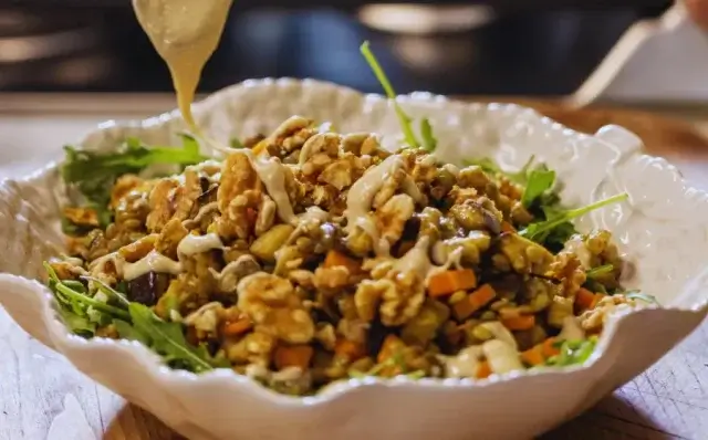 - Pode decorar com folhas frescas de salsa ou hortelã e, se desejar, adicionar nozes, queijo feta esfarelado ou sementes de abóbora.