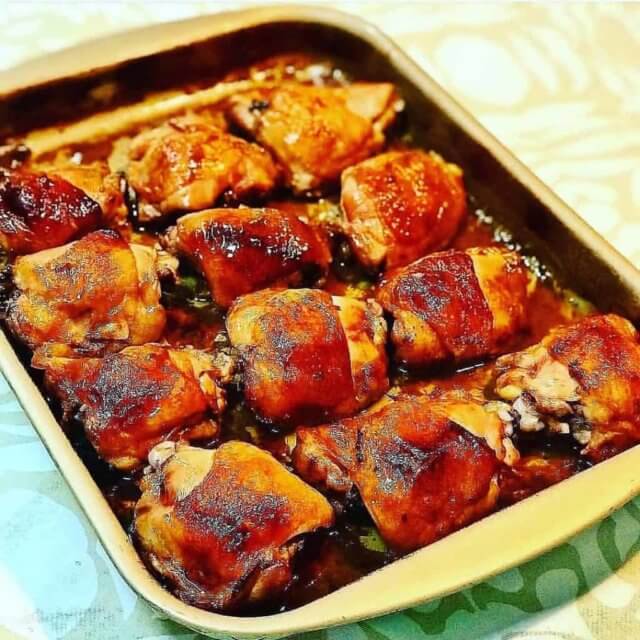 Instruções da receita: Limpe as sobrecoxas para retirar o excesso de gordura. Em uma tigela, coloque todos os ingredientes e misture tudo usando um garfo e deixe para marinar. Coloque as sobrecoxas dentro de um saco plástico ou então em uma vasilha com tampa, despeje a marinada, misture com as mãos e leve à geladeira por cerca de 1 hora. Acomode as sobrecoxas em uma fôrma, despeje a marinada por cima e leve ao forno a 180 graus por cerca de 1h20. Sirva quente.