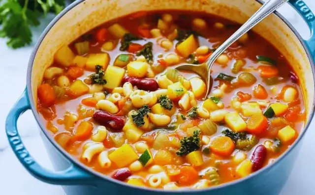 A sopa minestrone é um clássico da culinária italiana, cheia de legumes frescos, feijão e massas, oferecendo uma refeição nutritiva e reconfortante. Com uma mistura de sabores e texturas, é um prato perfeito para os dias mais frios e uma excelente maneira de incluir uma grande variedade de vegetais na sua dieta.