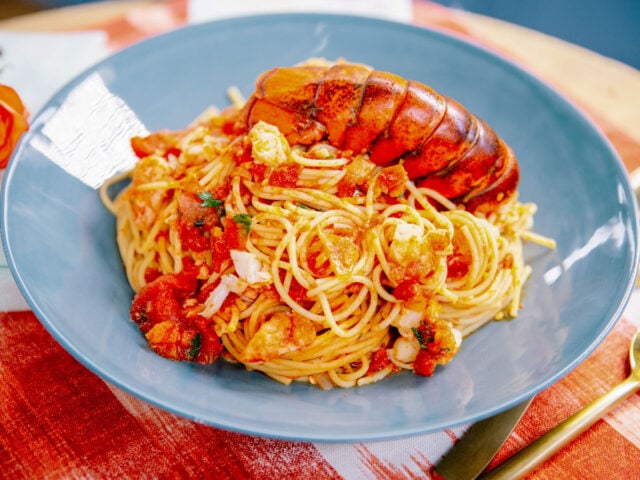 Acompanha com um copo de vinho branco fresco, como um Alvarinho ou um Verdelho. Se quiseres impressionar, serve a massa dentro da carapaça da lagosta — o efeito visual é maravilhoso!