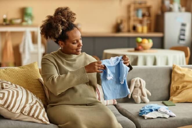 - Roupinhas para saída da maternidade: Conjuntos de roupa adequados para o bebé usar quando sair da maternidade, incluindo gorro, luvas e botinhas.