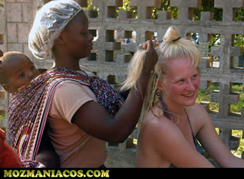 Tranças. Muitas meninas moçambicana (alguns meninos também) sabem o que é sentar durante um tempão para txunar o cabelo, o que muitas vezes é difícil. O processo pode levar várias horas dependendo do estilo.